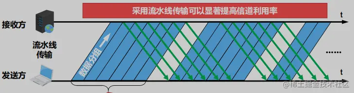 对于停止等待协议,我们不难发现是因为它是一种阻塞的传输方式,而回退N帧协议,采用了流水线进行传输: