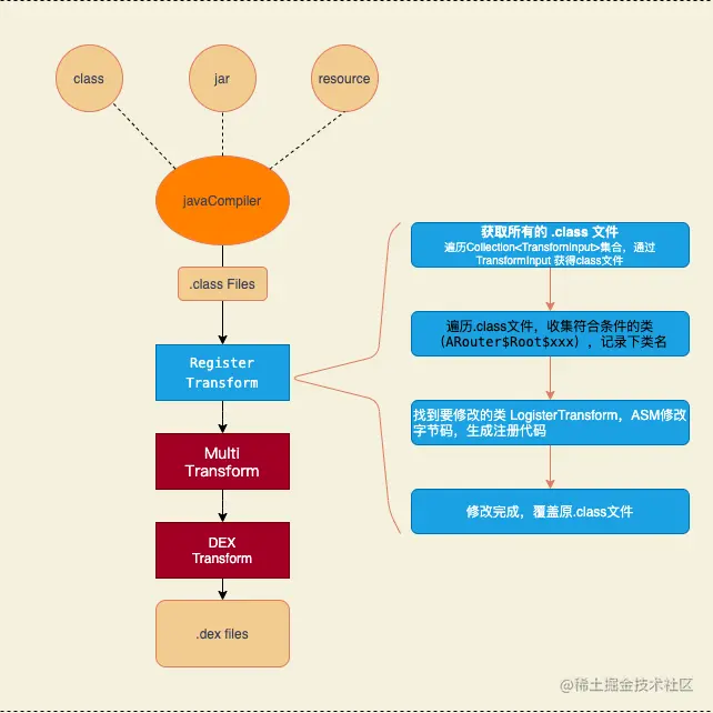 在编译期扫描即将打包到apk中的所有类,将符合条件的类收集起来,并通过修改字节码生成注册代码到指定的方法中