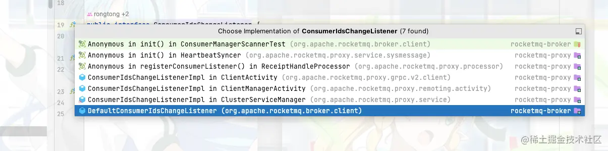 可以看到实现类有多个,我们直接看broker模块的DefaultConsumerIdsChangeListener类即可