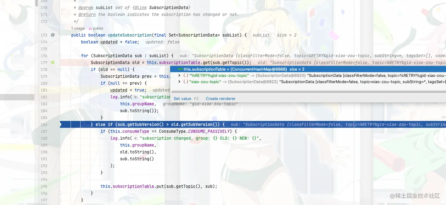 这个方法就是判断订阅关系是否发生了变化并更新订阅关系