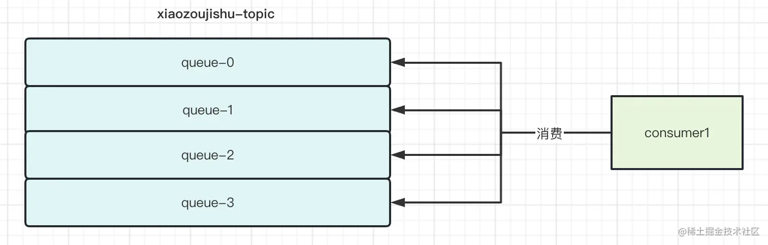 这里假设我们的topic是xiaozoujishu-topic,我们的读队列数