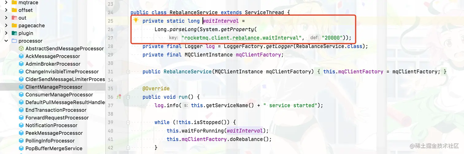 可以通过参数rocketmq.client.rebalance.waitInterval去配置