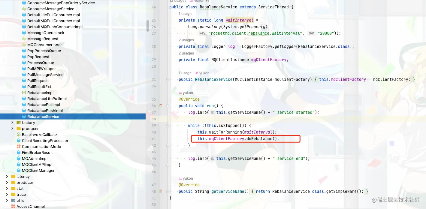 最终还是调用的是MQConsumerInner接口中的doRebalance方法