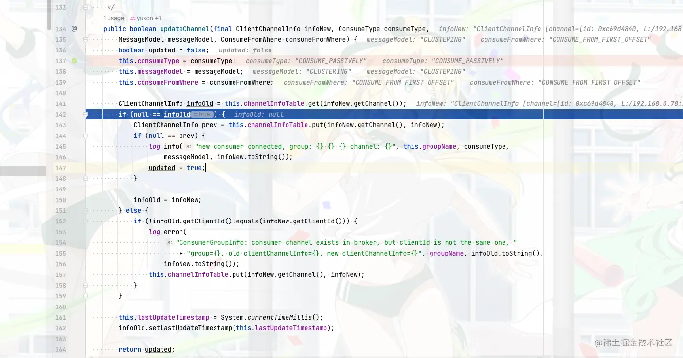 consumerGroupInfo.updateChannel(clientChannelInfo, consumeType, messageModel, consumeFromWhere);