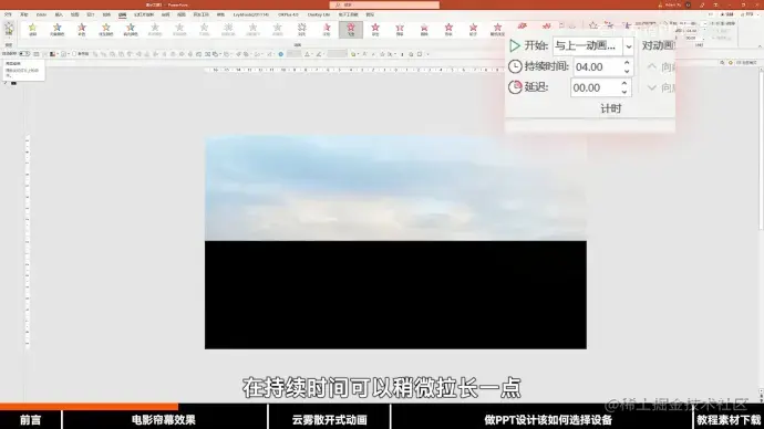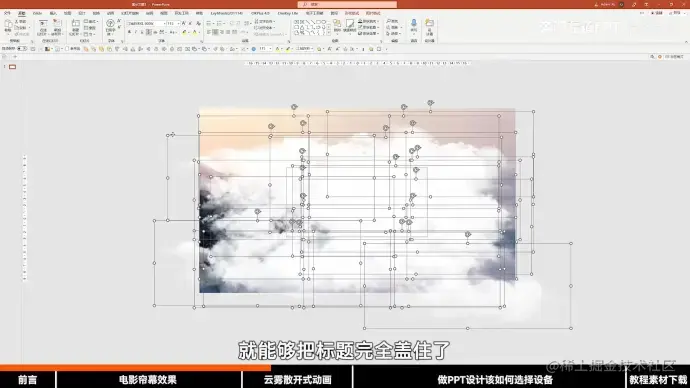 2.复制一页幻灯片,将云朵随机置于画面外,并添加平滑的切换效果。