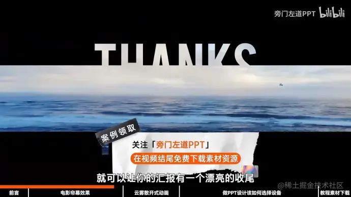 5.结尾只需更改文案,将两个矩形的动画效果改成飞入,即可做出结尾页。