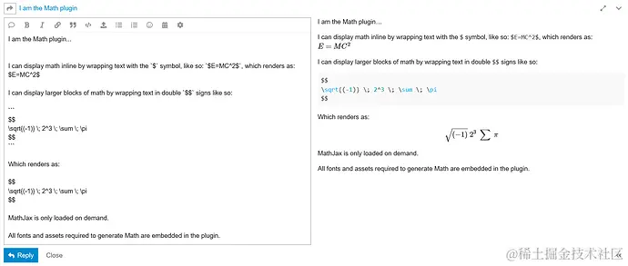 当你把这个插件启用成功后,你可以使用符号来对要表示的数学方法进行标记 $ 例如下面的代码: $E=mc^2$.