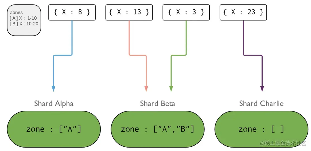 - 对于分片集合(sharded collection)来说,每个分片上都存储了集合的一部分数据(按照分片键切分),如果集合没有分片,那么该集合的数据都存储在数据库的 Primary Shard中。
