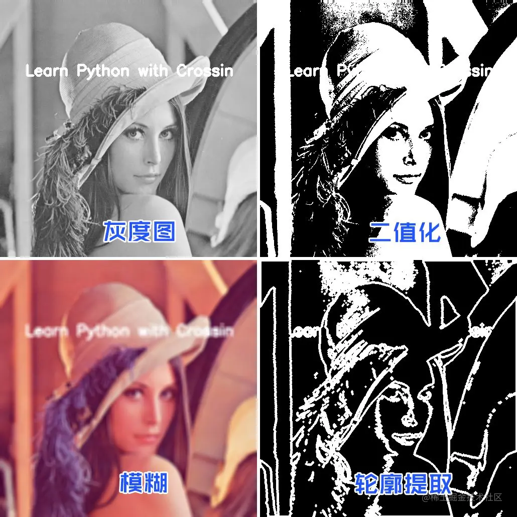 这几种都属于数字图像处理的常用方法。OpenCV-Python 基本都封装好的接口,只需一两行代码就能完成,在实际项目开发中非常方便。