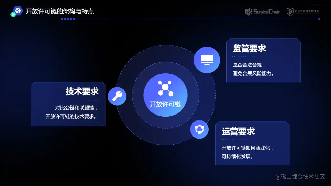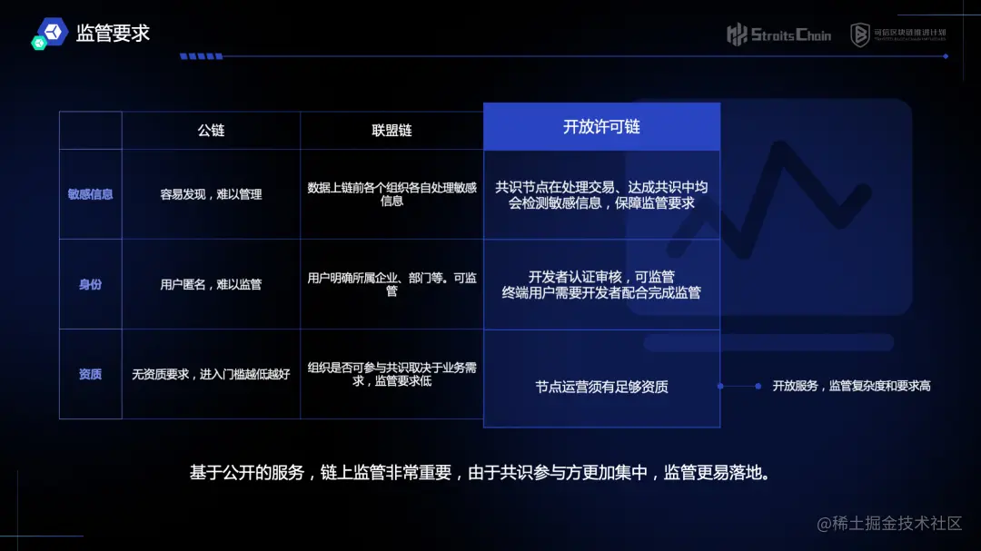 为符合 Web3 和元宇宙更加开放,更加合规可监管的发展趋势,开放许可链在架构设计上要兼顾监管要求、技术要求和运营要求,三者缺一不可。