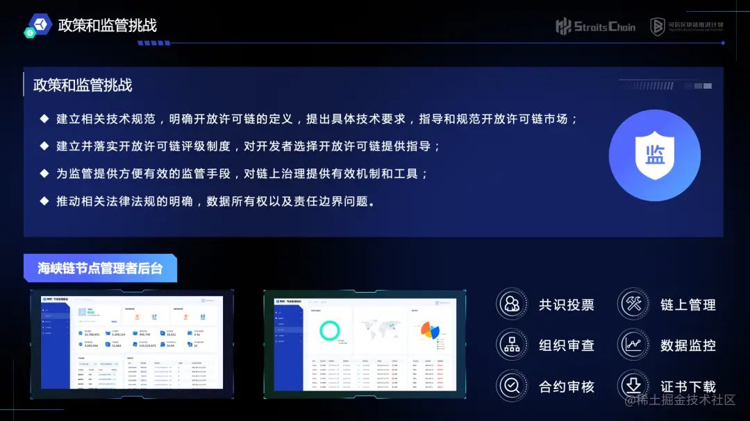 针对开放许可链所面临的政策与监管挑战,“海峡链”结合多年的区块链行业经验,提供以下参考建议: