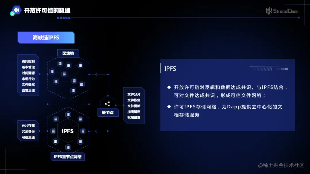 同时,“海峡链”自主研发的“许可IPFS存储网络”,实现链下数据去中心化存储,支持数据确权、隐私保护和永久储存,支持开放许可链针对不同区块链应用场景的灵活开发、应用部署,低成本多链扩容。