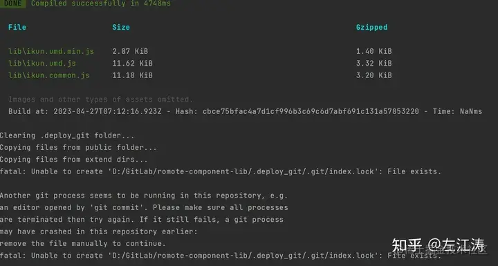 可以看到,在编译成功后会自动将代码拷贝到 .deploy_git 文件下,自动将编译包推送到制定git远程仓库。