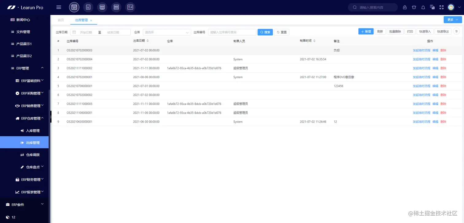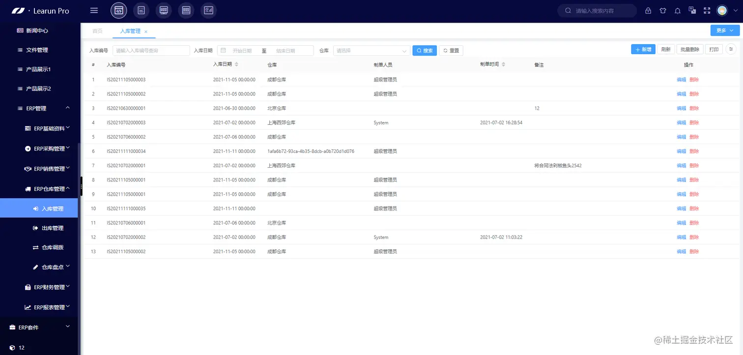 LeaRun通过低代码开发平台搭建的WMS仓储管理系统,不但具备智能仓库管理、库存商品信息一体化、操作信息全记录等多种功能,还能满足仓储管理信息化过程中的多种个性化需求,帮助企业妥善解决仓储管理难题。