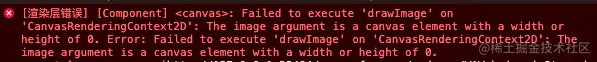 该业务场景下,不能让用户看到画布,但是设置canvas的display为none将不能进行绘制,会报如下错误,导致绘制失败。