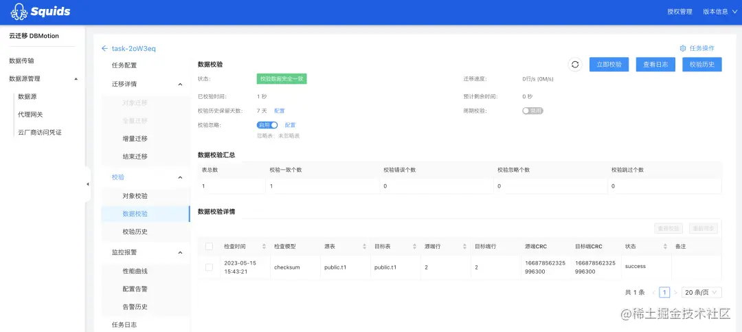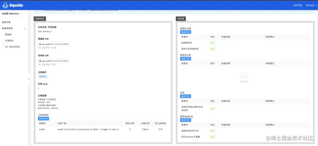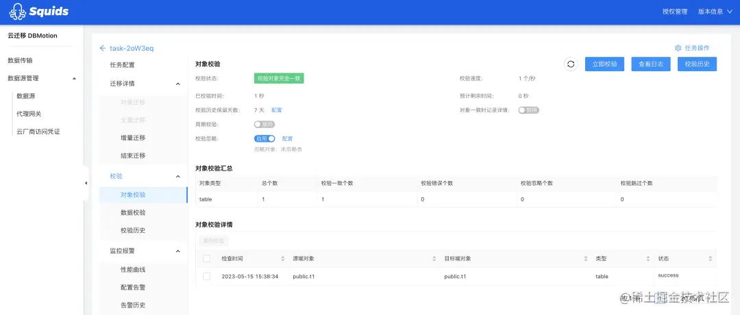 目前,Squids DBMotion已经支持openGauss的单向和双向同步,并且支持对象和数据校验,支持监控报警。