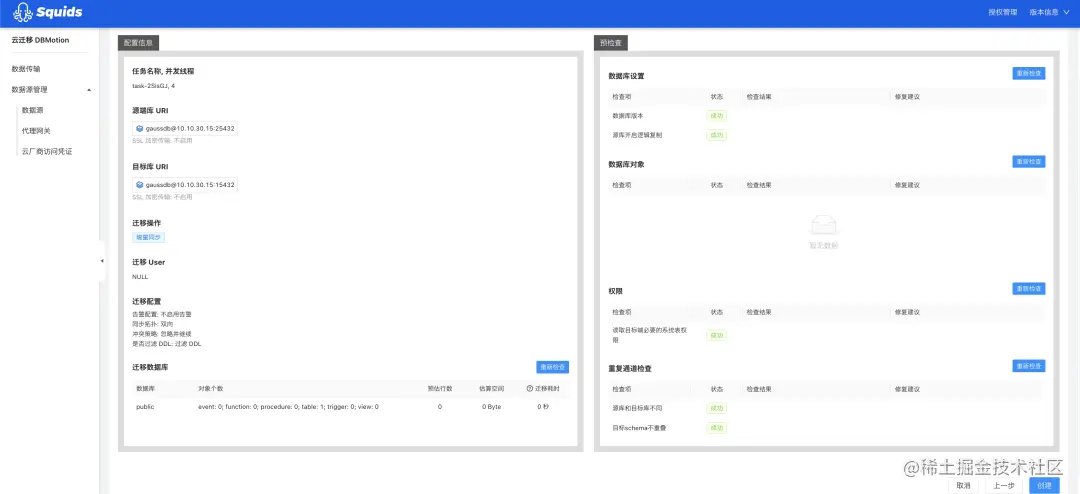 - 如果配置确认以及预检查没有问题,就可以创建反向同步任务。