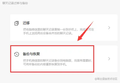 4、找到并点击**【备份聊天记录至电脑】**,在手机上确认后开始备份。