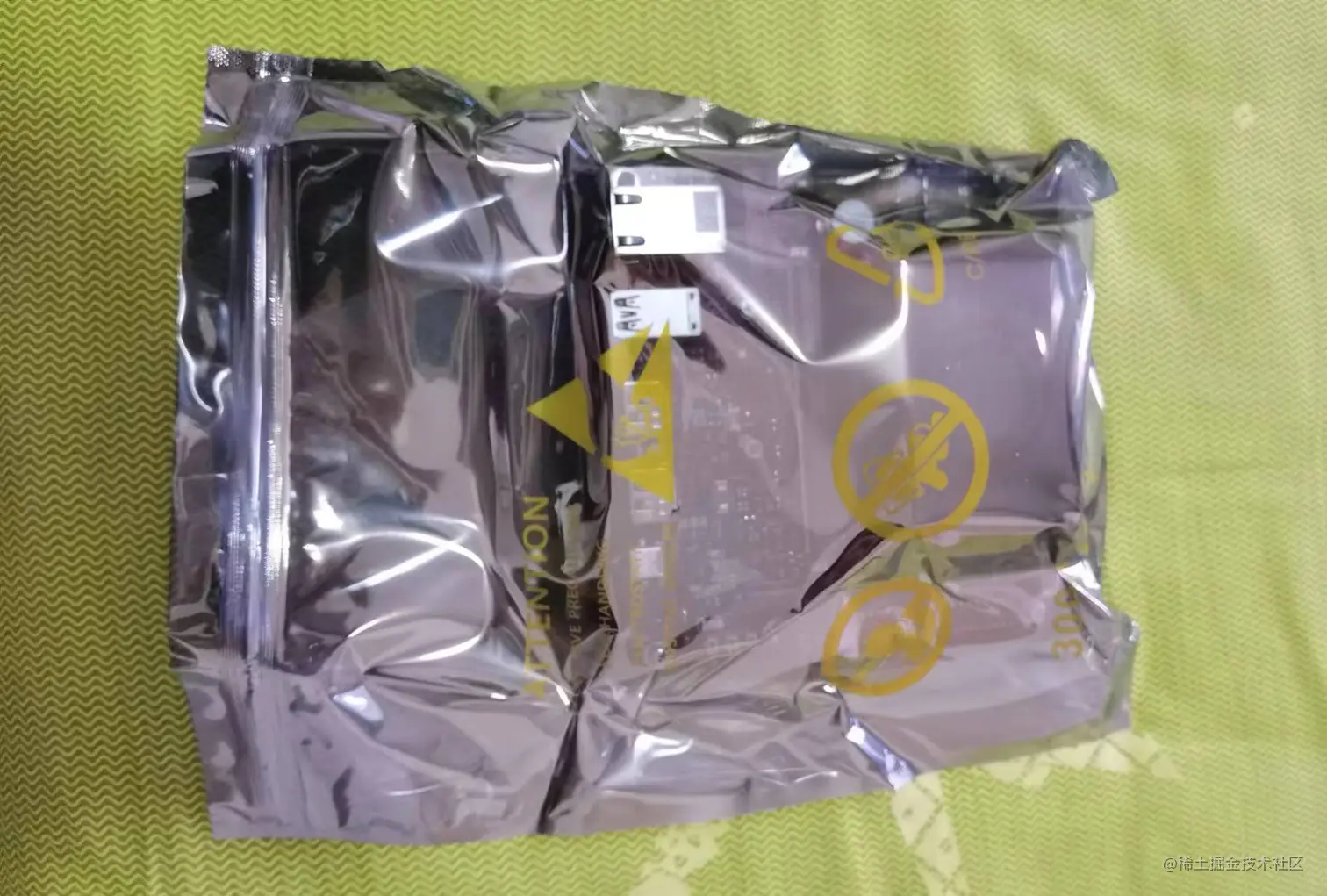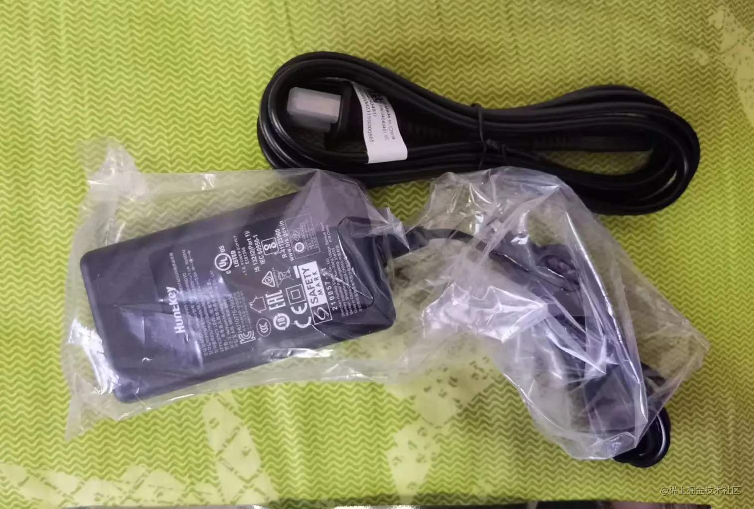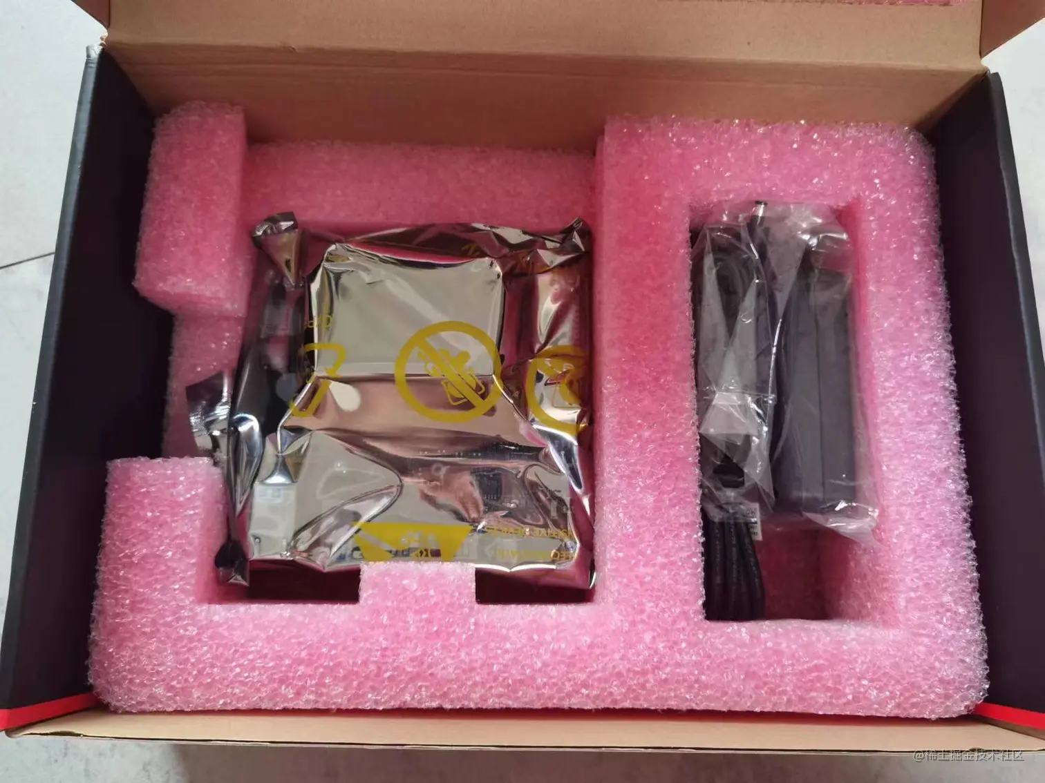 左边一个好大的开发板包装袋,右边是电源。这样的包装方式可以保证运输过程中开发板不会受到颠簸后的损坏,看来产品盒设计的人确实用了点心思。