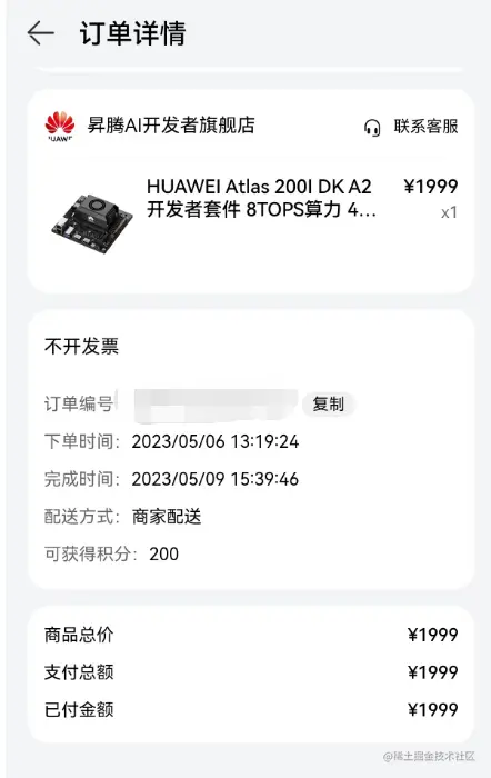 张小白是从2023 CANN训练营的微信群里面知道了Atlas 200I DK A2上市的消息,出于对昇腾产品的无脑关注,第一时间通过华为商城APP下了单: