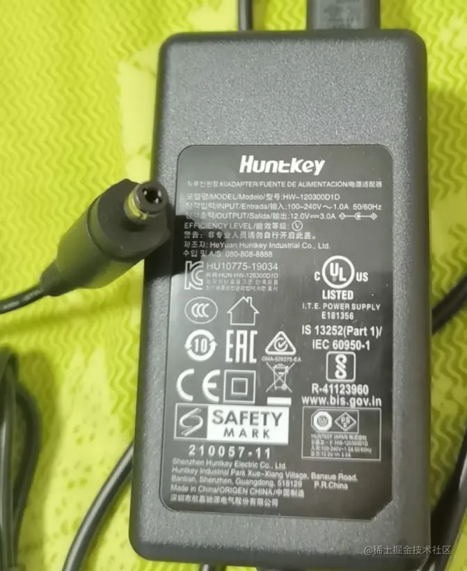 是12V3A的圆孔插头,接到开发板的电源插口即可。