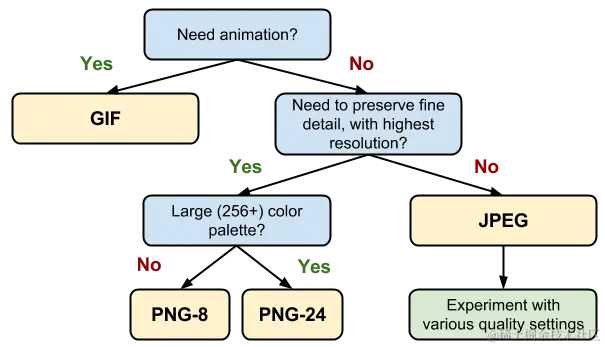 最后附上Google关于图片格式的选择指南: