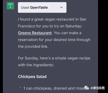 从本质上讲,这个新更新将意味着 ChatGPT 可以从这些平台引入工具。例如,使用Wolfram绘制图表或从 OpenTable 向您发送餐厅预订信息。