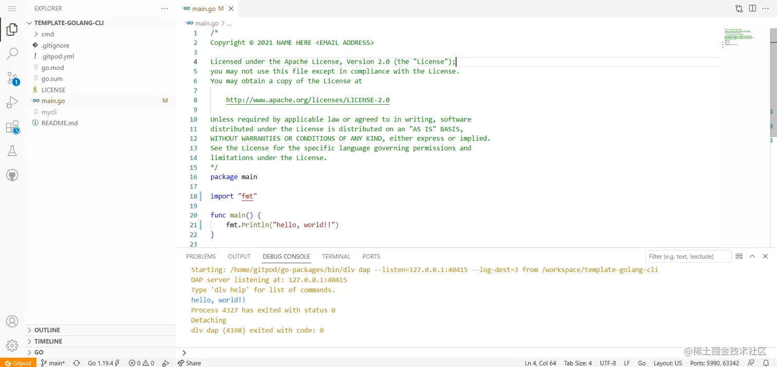 我们也可以使用在线编辑器调试代码,访问gitpod.io/ ,根据提示登录并创建项目,即可进行编码: