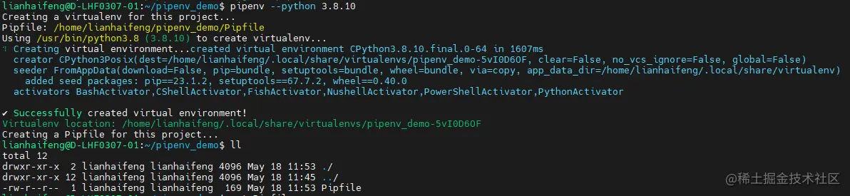 pipenv --python 3.8.10 #指定使用Python3.8.10的虚拟环境