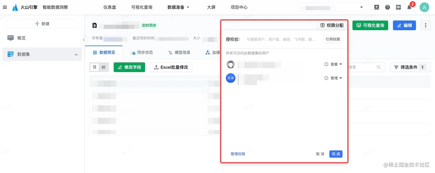 同步 DataWind 数据集与数据授权,数据授权操作只需在 DataWind 数据集进行。