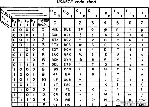 计算机先驱们也是这么想的。他们为每个英文字符编号,再加上一些控制符,形成了我们所熟知的 ASCII 码表。实际上,由于英文字符不多,他们只用了字节的后 7 位而已。