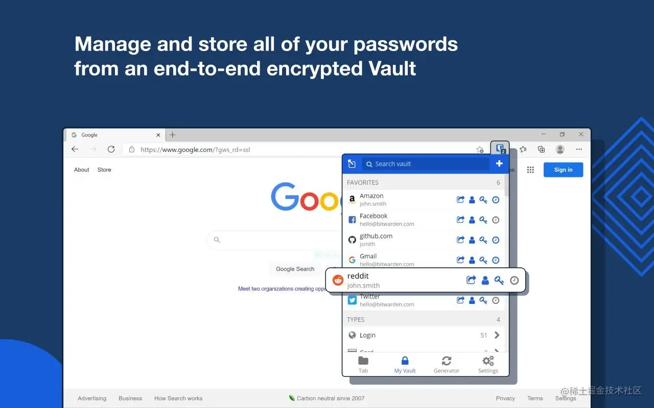 Bitwarden是一款开源的密码管理工具,它可以安全地保存和同步你的密码。这个工具有简洁的界面和强大的功能,可以 Generate强密码,管理现有密码,在多台设备之间同步,使用指纹和双重认证等功能保护你的密码安全。