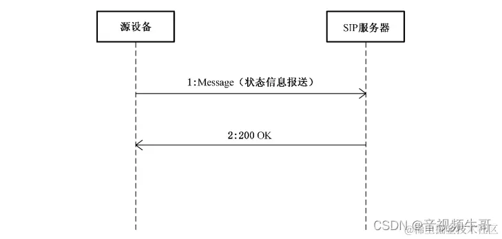 a) 1:源设备向SIP服务器发送设备状态信息报送命令。设备状态信息报送命令采用 Message方 法携带;