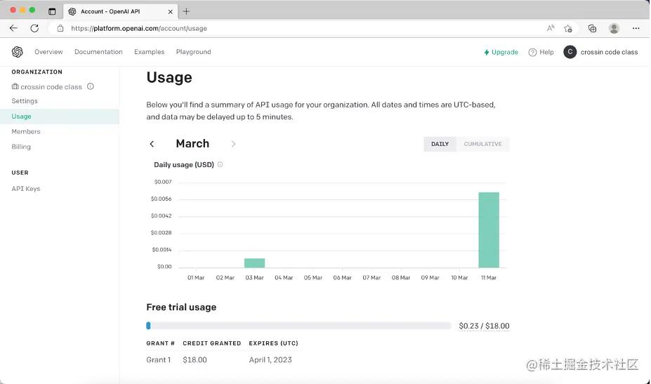 ChatGPT的接口不是免费的,费用以token为单位计算,1000个token大约相当于750个英文单词,费用为0.002美元。通常一次问答会消耗几百个token,也就是约人民币1分钱左右。目前每个账号注册后会赠送一定的额度,可以在页面上查看API额度的使用情况。