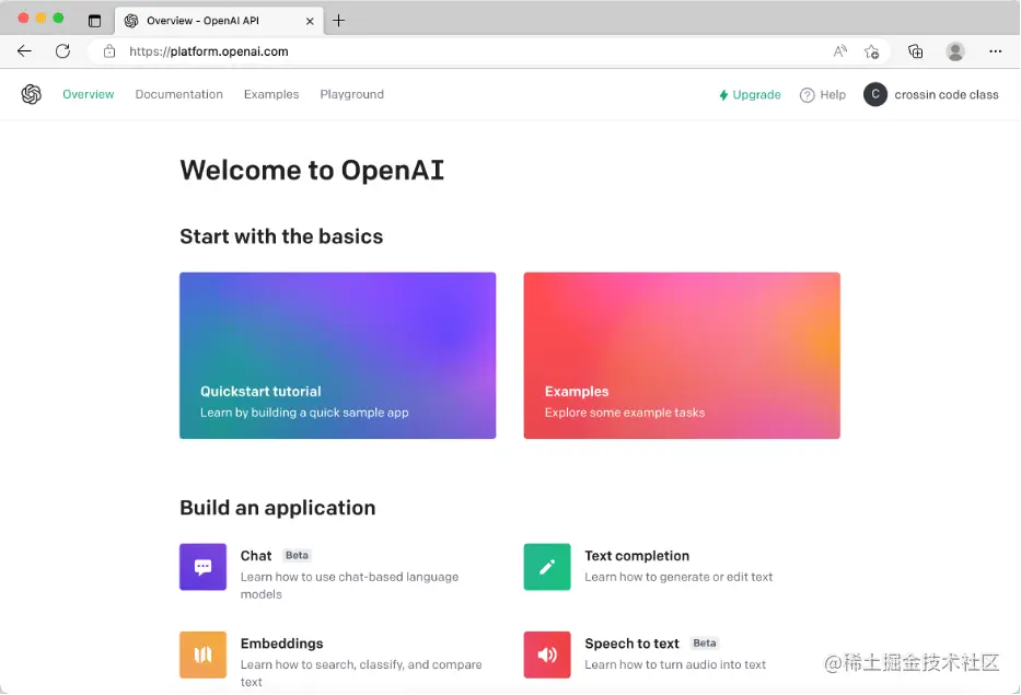 进入OpenAI的开放平台(platform.openai.com ),可以看到接口相关文档和演示代码。