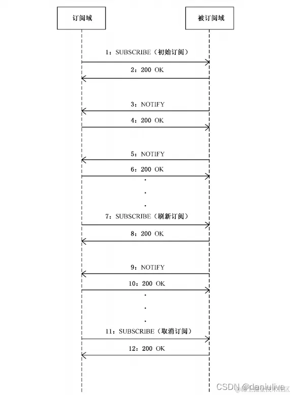 - NOTIFY request必须包含"Subscription-State"头,有三个可选的值:"active", "pending", "terminated". 当值是"active"或"pending"时,应该也包含一个”expires“参数,显示订阅剩余时间。