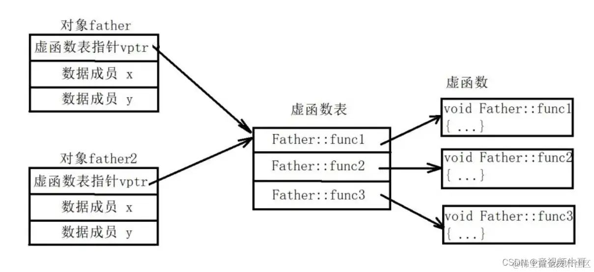 既然这样,是不是C++默认的析构函数设计成虚函数更合适?答案是否定的,大家都知道,虚函数需要额外的虚函数表和虚表指针,占用额外的内存,如果类的设计不考虑继承,把析构函数设置成虚函数无疑是浪费内存。