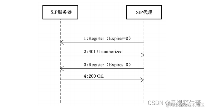 c) 3:SIP代理重新向SIP服务器发送 Register请求,在请求的 Authorization字段给出信任书, 包含认证信息,Expires字段的值为0;