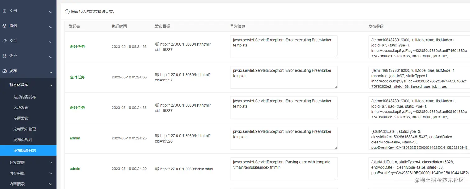内容发布错误后,错误日志需要独立跟踪