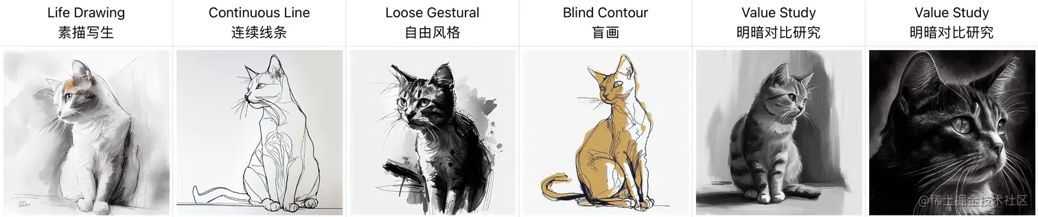例如:/imagine prompt <style> sketch of a cat