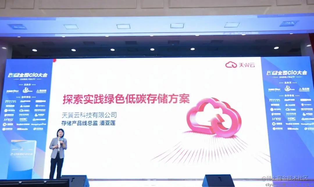 天翼云国际业务事业部存储产品线总监潘亚莲出席会议并发表演讲,分享了天翼云在绿色低碳存储方案方面的探索与实践。