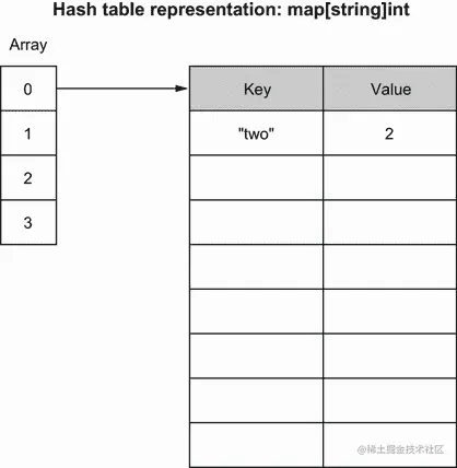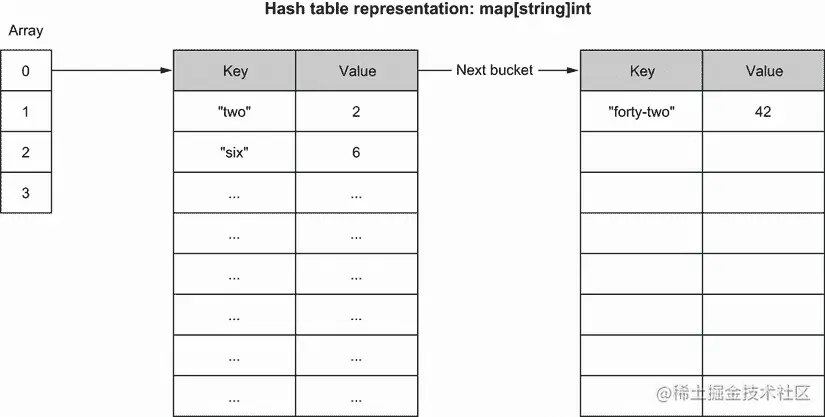 另一个解决方案是改变映射类型来存储数组指针:map[int]*[128]byte。它没有解决我们将会有相当数量的桶的事实;然而,每个桶条目将为该值保留指针的大小,而不是 128 字节(在 64 位系统上是 8 字节,在 32 位系统上是 4 字节)。