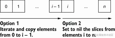 copy内置函数将一个切片复制到另一个切片,记住复制元素的数量对应于两个切片长度之间的最小值。 - 使用指针切片或带有指针字段的结构,可以通过将切片操作排除的元素标记为