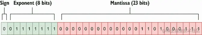 当算术运算创建的值超出了可以用给定字节数表示的范围时,就会发生整数溢出。使用 32 位来表示一个int32。下面是最大int32值(math.MaxInt32)的二进制表示:
