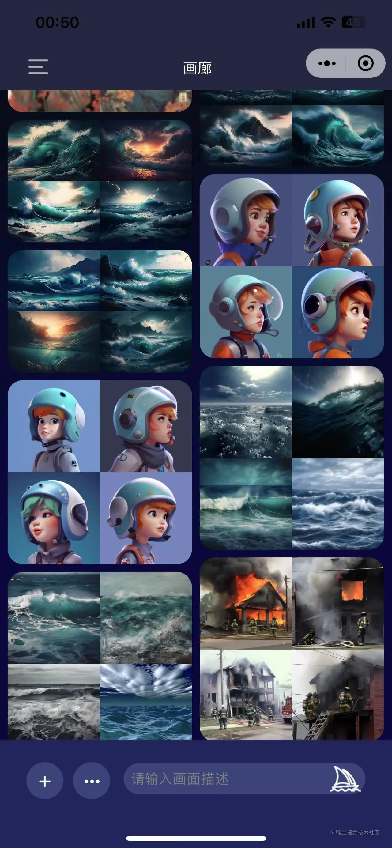 你也可以在画廊中进行一些创作,在文本输入框输入画面描述后,点击帆船的图标,即可开始图像生成。