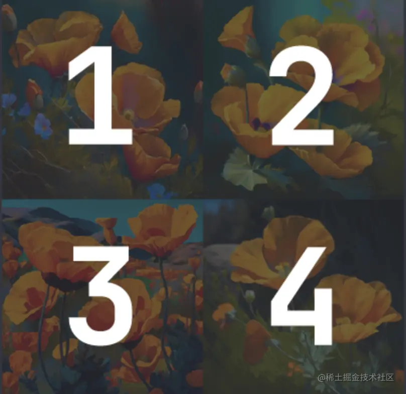Midjourney 机器人通常需要 1 分钟的时间来生成 4 张图片。