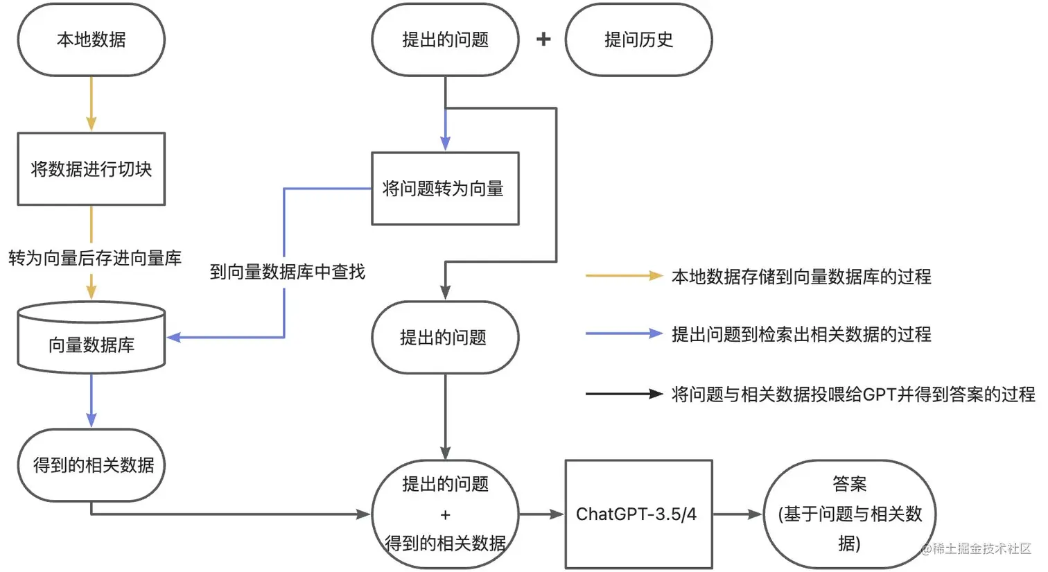 2.取出查找到的相关的数据资料,与提出的问题一起喂给GPT3.5/4。