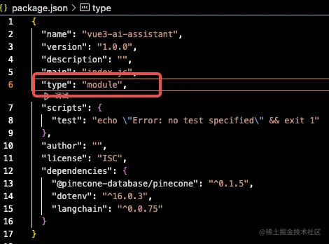 初始化项目,生成package.json文件,并为项目安装langchain。