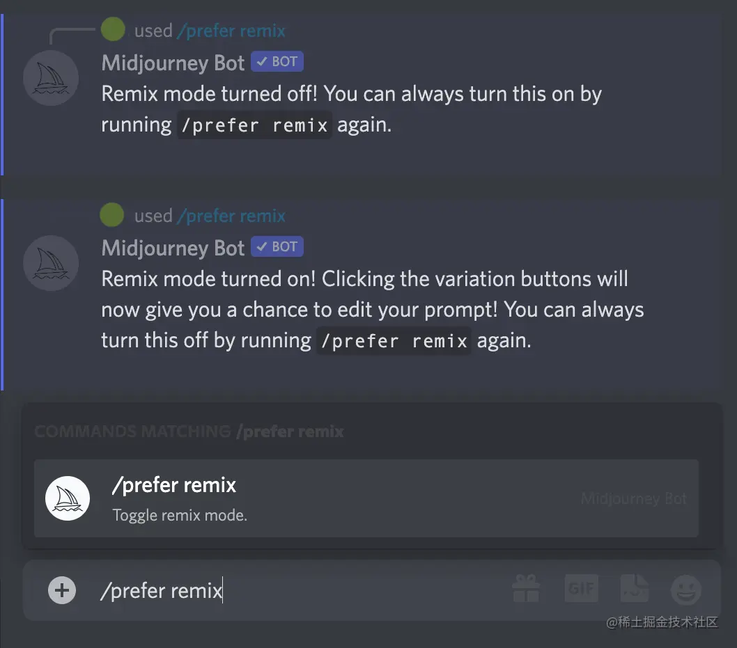 输入/prefer remix来切换Remix模式的开启和关闭。