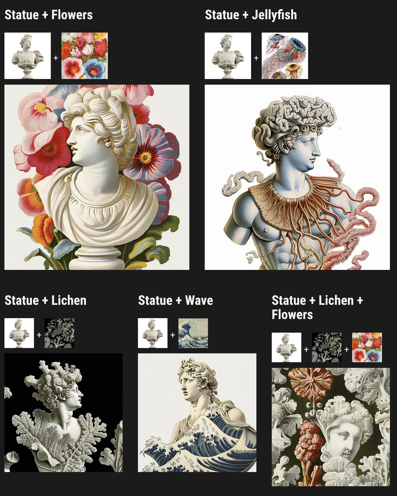 在输入提示中使用图像来约束构图、风格和颜色。可将图片提示单独使用或与文本提示配合使用,尝试组合不同风格的图像会取得不一样的结果。选用与图像相关的文本提示也可能进一步增强结果的可预测性。
